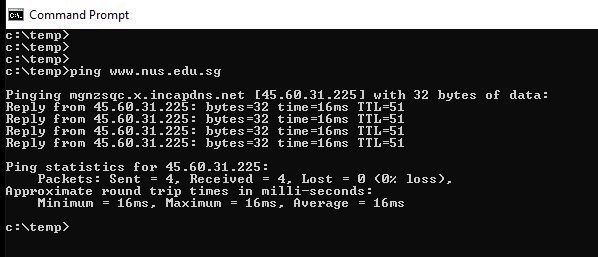 A ping from the computer to Singapore and back (www.nus.edu.sg) took 16 ms.
