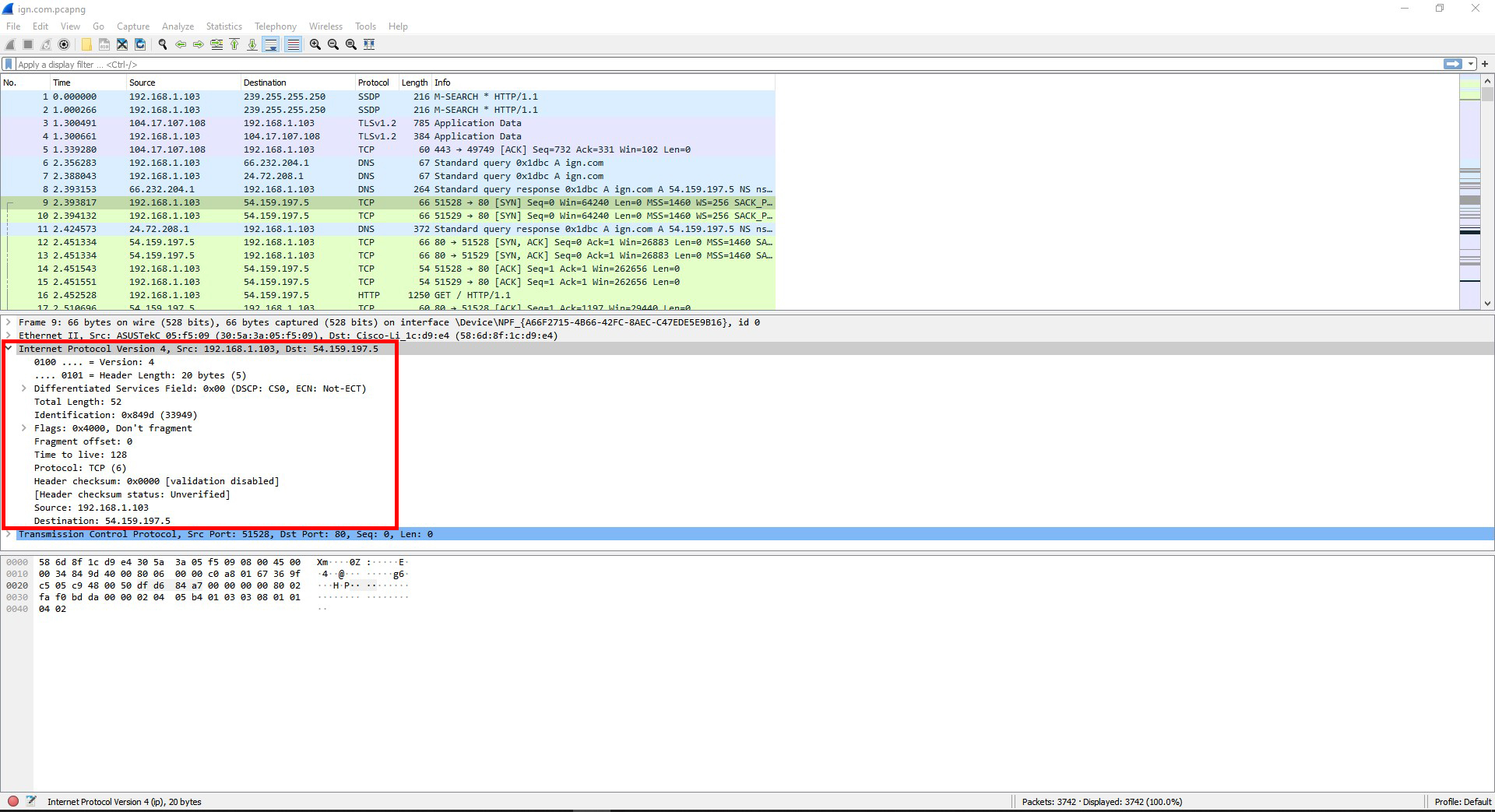 Internet Protocol Version 4, Src: 192.168.1.103, Dst: 54.159.197.5