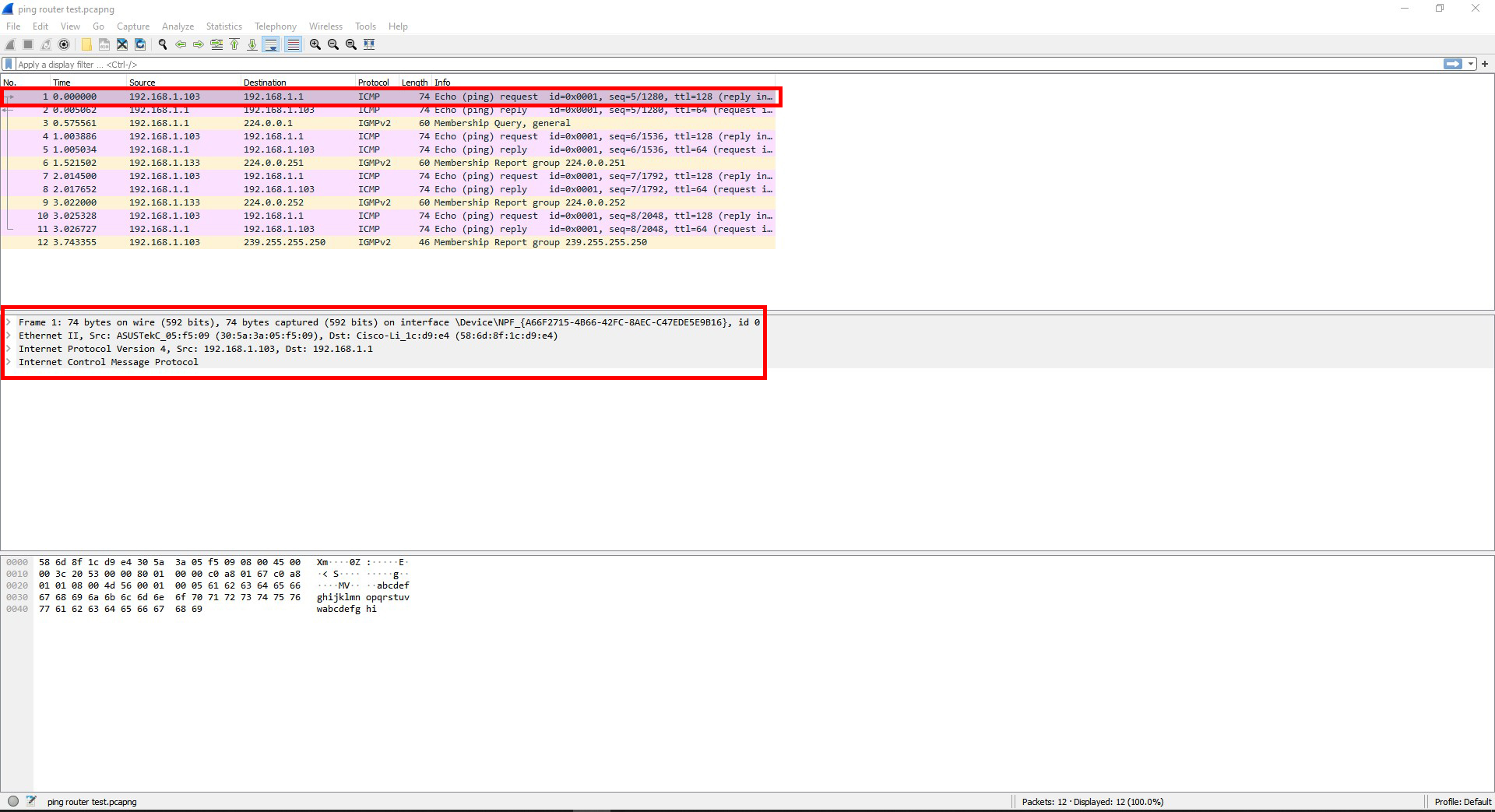 Question #1: In the top pane, select any packet to see its contents. Find the frame’s protocol type, length, source & destination address information.
